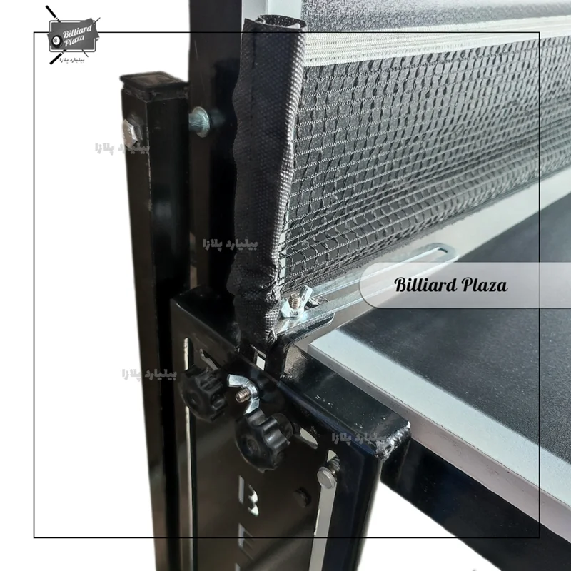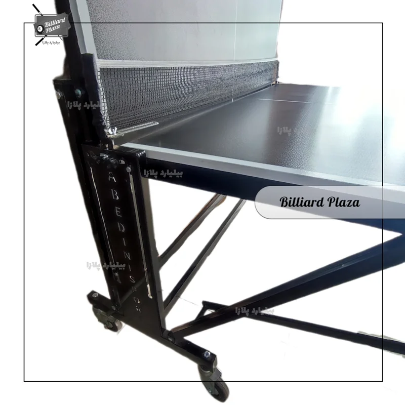 میز پینگ پنگ تاشو مشکی کمجا (باز و بسته شدن روی ریل عمودی)چهار چرخ بیمارستانی قفل دارچهار پایه ثابت ریگلاژ شوندهصفحه ملامینه درجه یک ابعاد میز ۱۵۲ در ۲۷۴پروفیل فلزی دور میز ۳۰ در ۵۰پروفیل پایه ۳۰ در ۳۰ الکترواستاتیک