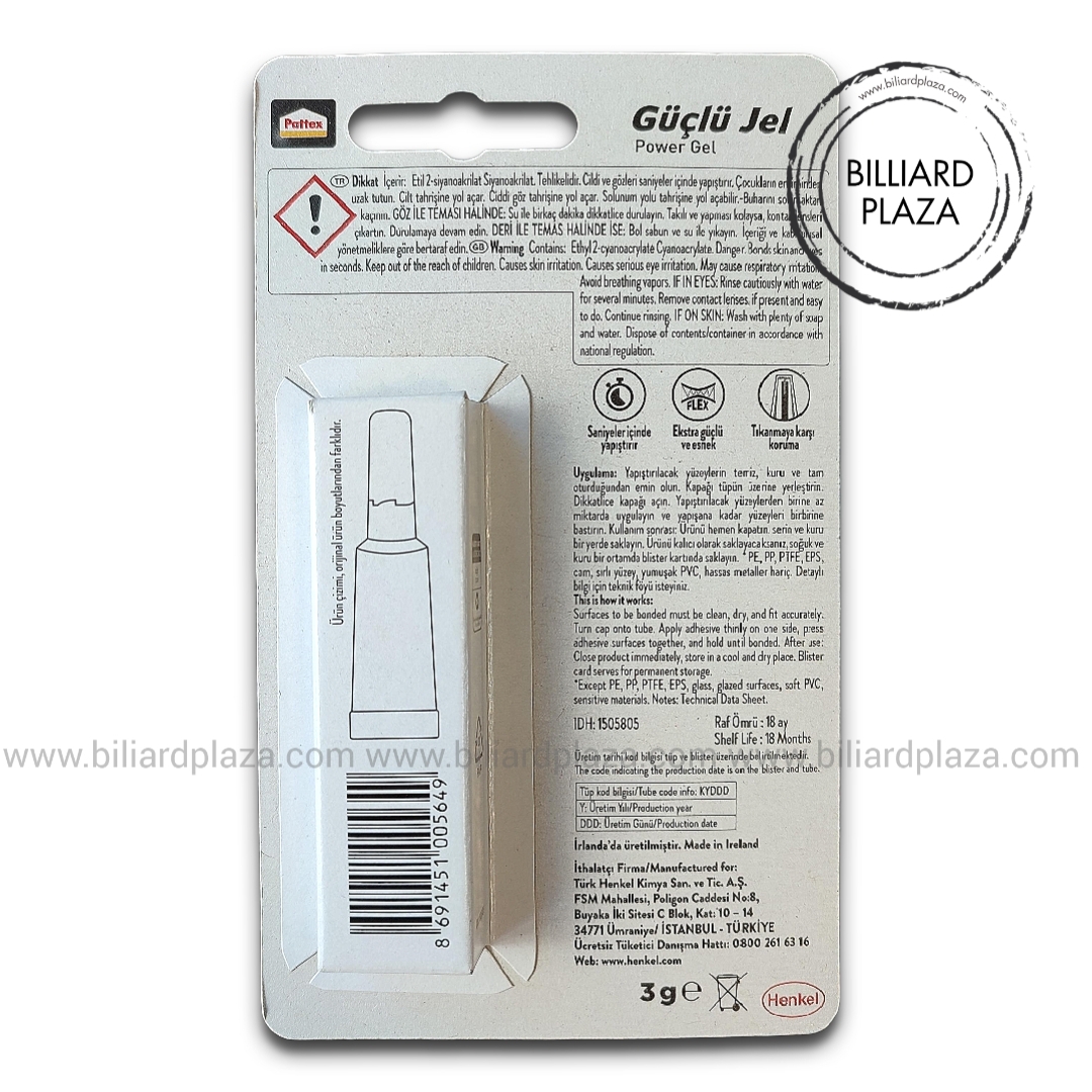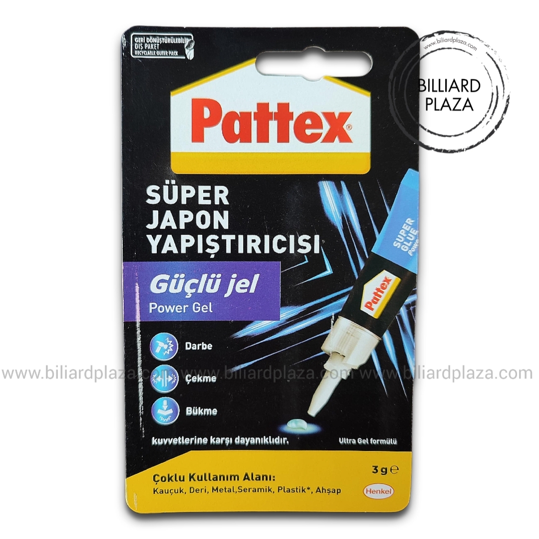 چسب قطره ای برند Pattex ساخت ترکیه و با حالت ژل مانند خود در چسباندن محکم انواع سرچوب بیلیارد و اسنوکر کاربرد دارد. برای نتیجه بهتر باید 2 سطح صاف و تمیز باشند و بعد از نصب تیپ تا خشک شدن کامل چسب، فشار کافی روی سرچوب اعمال شود .